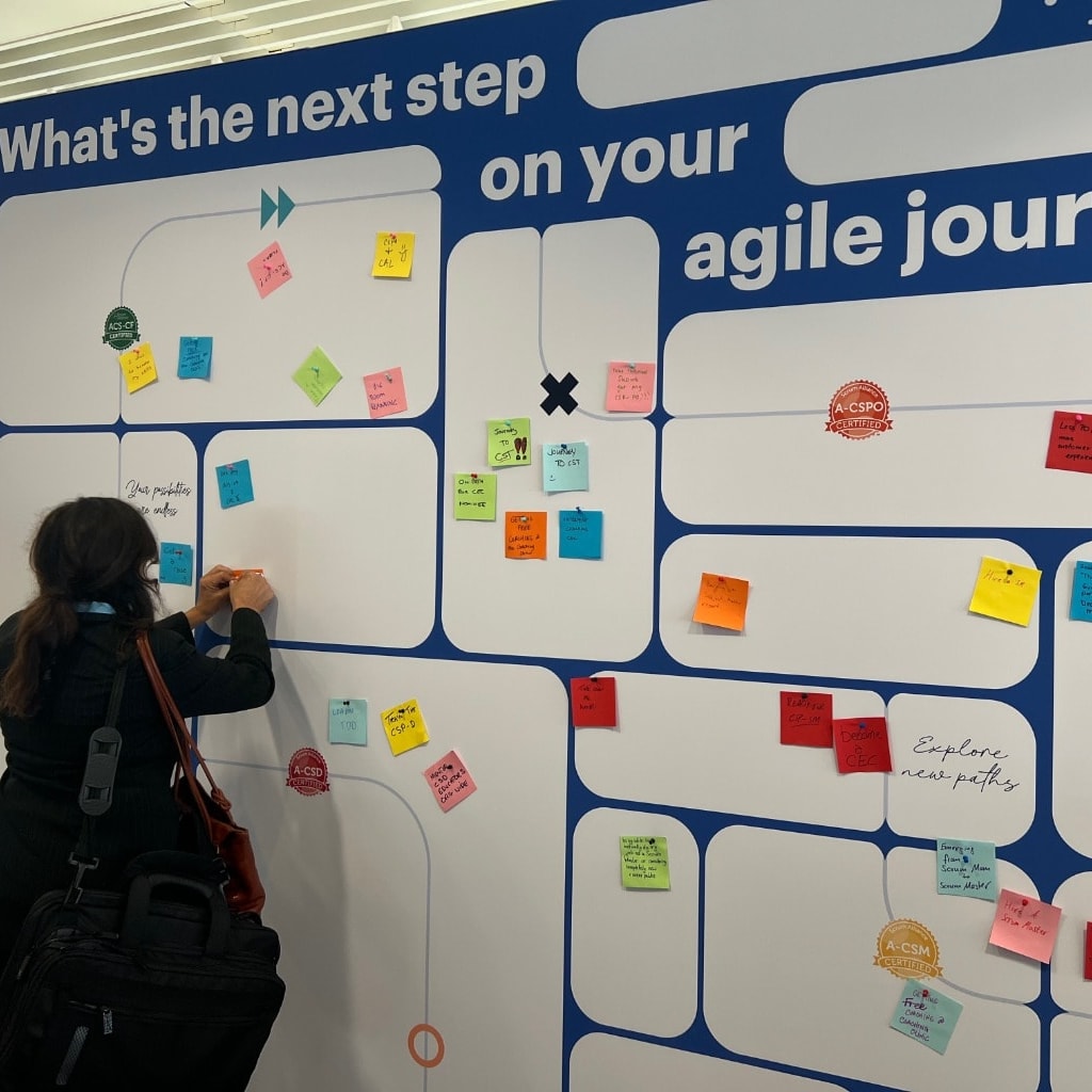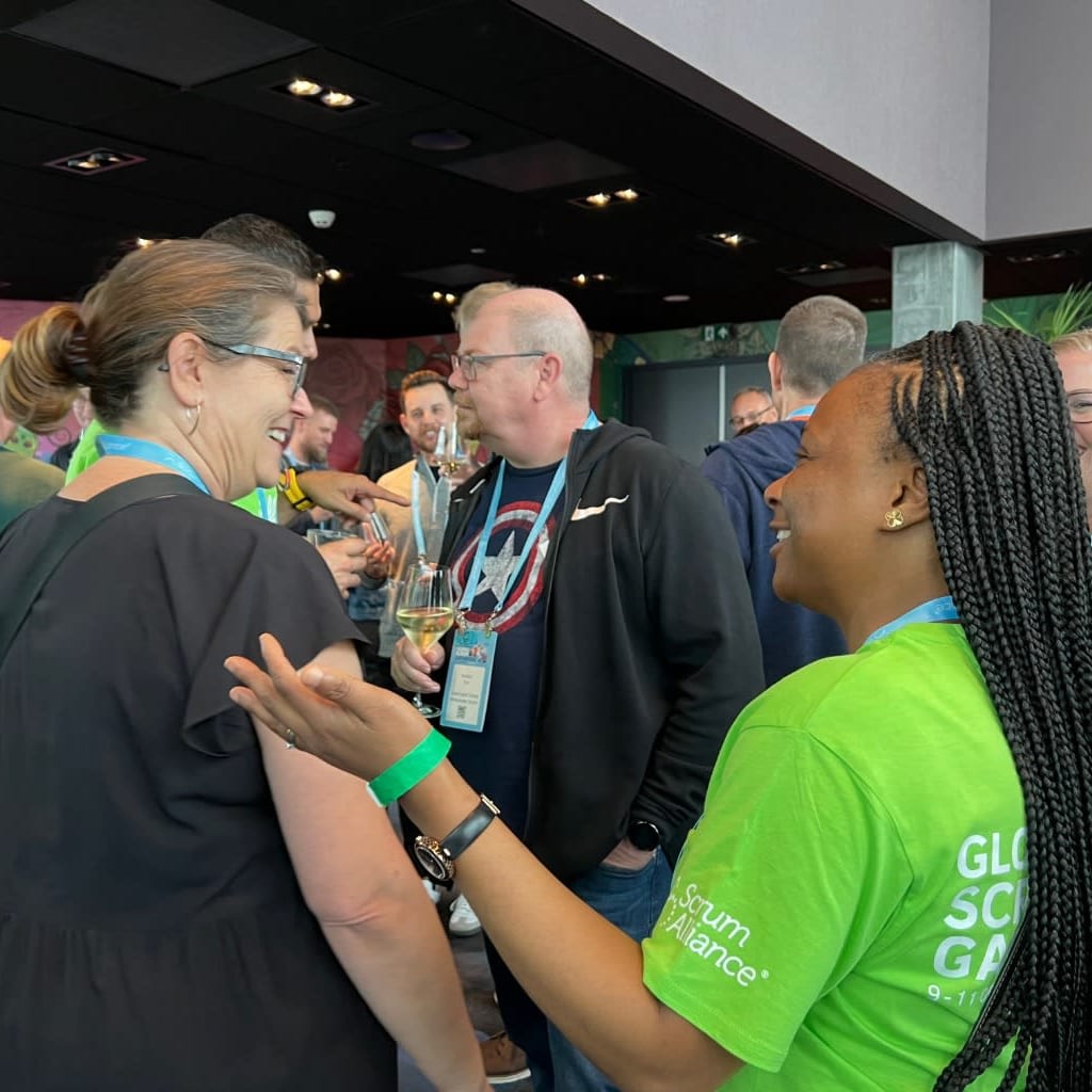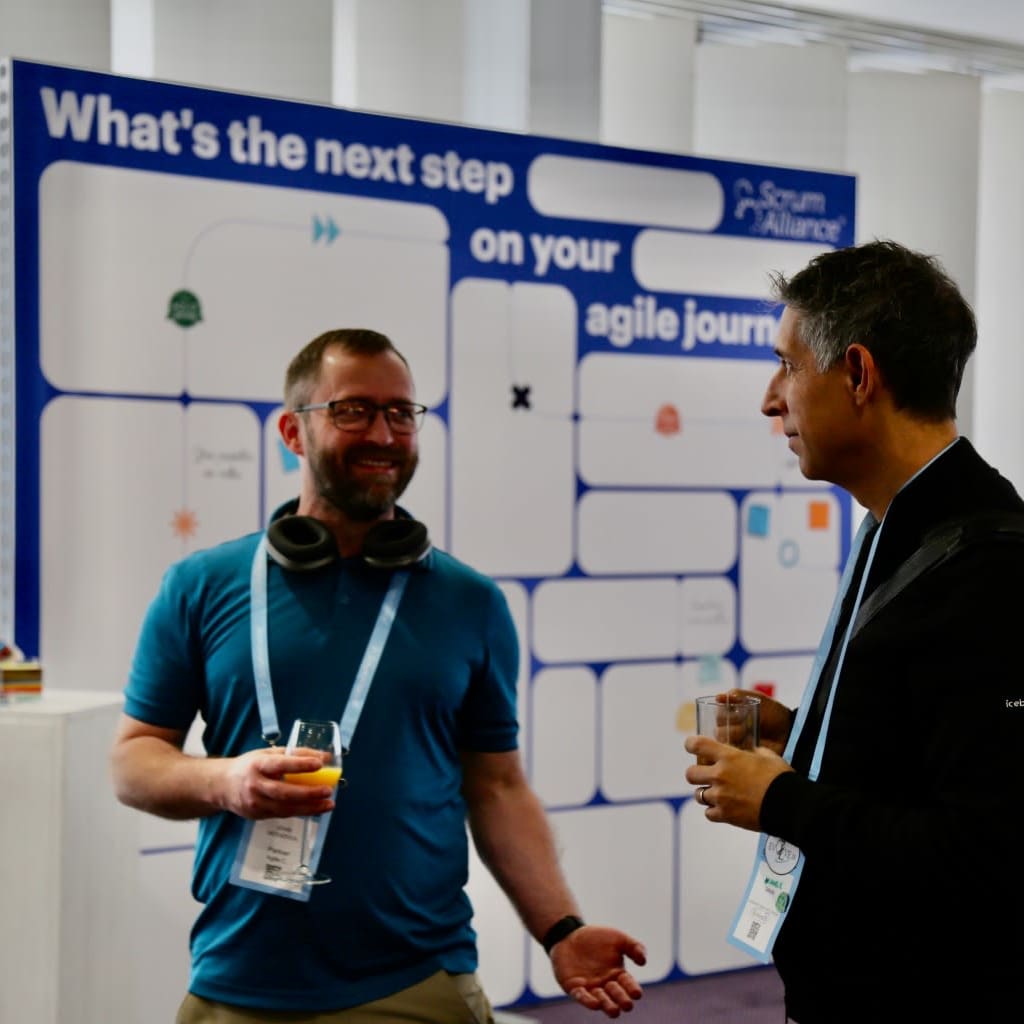 For Scrum Alliance members, stop by the booth to decorate your lanyard with all your Scrum Alliance badges and connect with other community members. We'll have fun and games (and some surprises!).